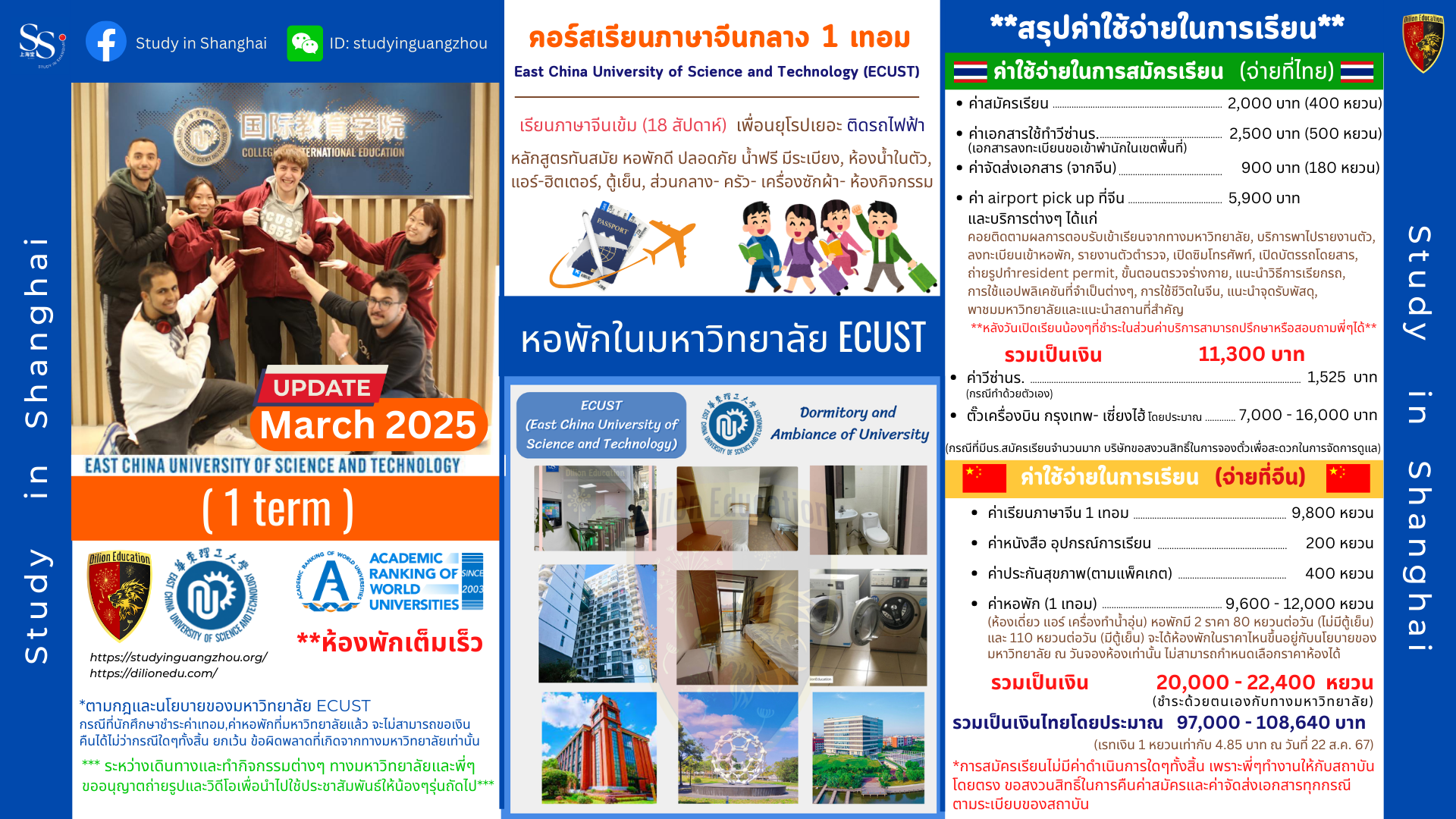 เยี่ยมชมเว็บไซต์มหาลัย คลิก https://ies.ecust.edu.cn/en/